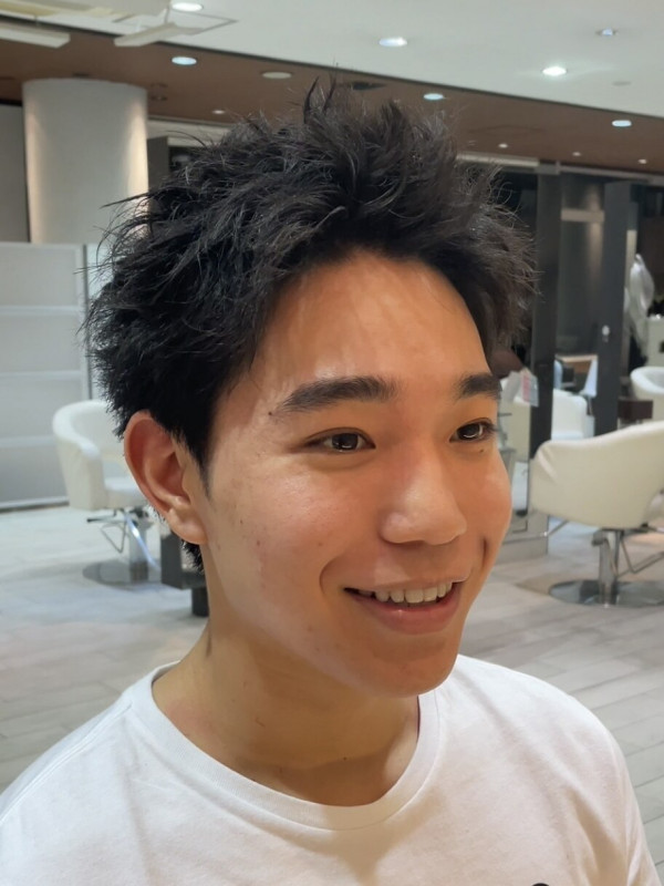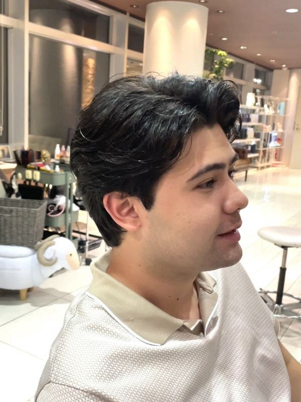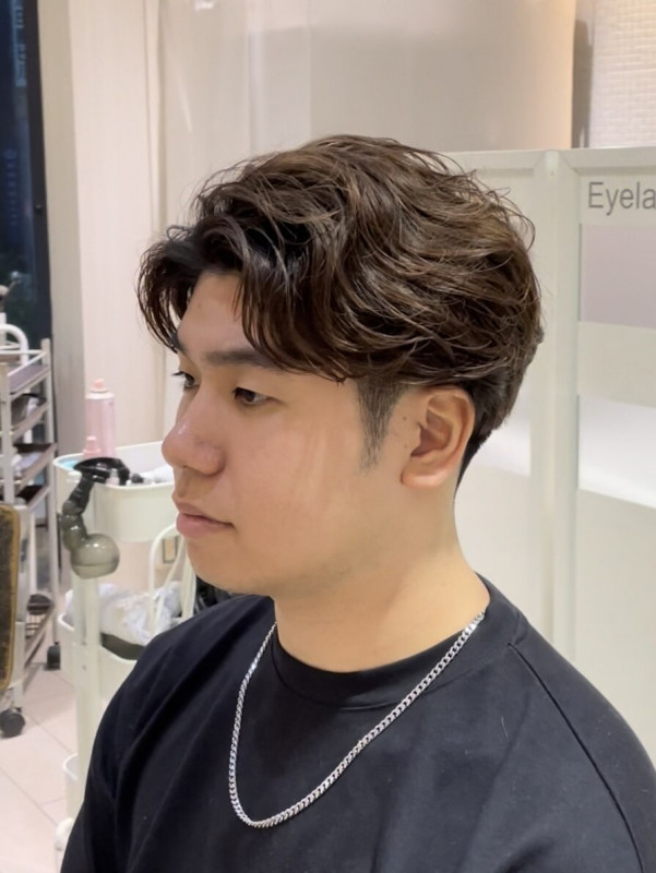 パーマの強さやロッドの巻き方により、ランダムな動きや前方向への毛流れなど、様々なニュアンスを作り出せます。特に、耳周りや襟足を短く刈り上げたツーブロックスタイルに組み合わせることで、爽やかさとアクティブな印象を両立できます。