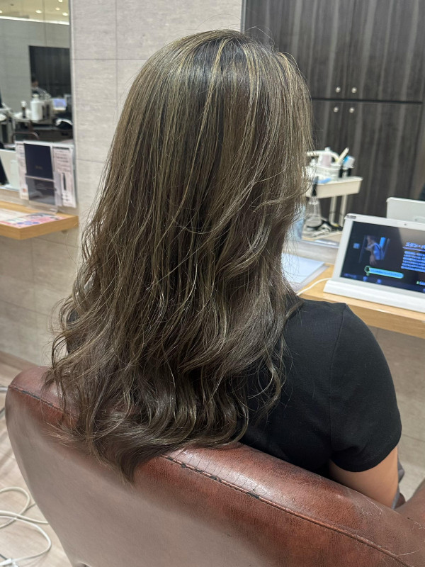 髪に軽やかさとおしゃれ感を足したいなら、ベージュハイライトがぴったり。自然な明るさが髪全体を柔らかく見せ、秋冬のコーディネートにも華やかさをプラス。さりげなく立体感が出るので、いつものヘアが一気におしゃれに見えます。