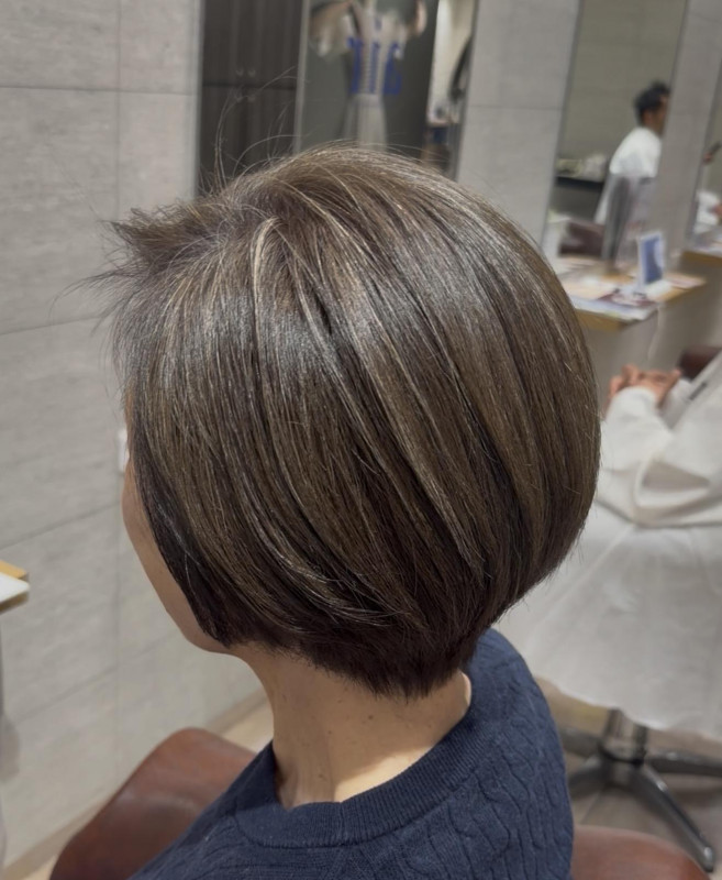 スモーキーベージュは、落ち着きの中にほんのり柔らかさがある優秀カラー。どんなファッションにも合わせやすく、髪全体がふんわり軽やかに見えるので、秋冬のヘアチェンジにぴったりです。