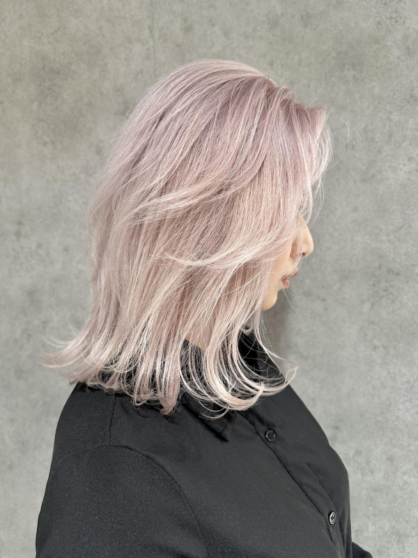 こちらはブリーチ2回〜3回で作るホワイトピンク。