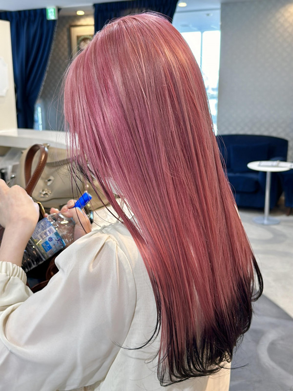 また、ヘアカラーにおいてのピンクは他のカラー剤よりも髪に残留しやすく、ブリーチなしやブリーチ1回でのピンクは、その後暖色系から寒色系に変えづらいとされてます。