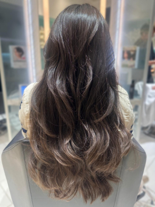 心斎橋駅から徒歩3分の美容室 エアーオオサカ 店長 山本莉子です【お客様ヘア】2年ぶりのヘアカラーメンテナンスがやりやすいようにナチュラルなグラデーションカラーブラウンベースで髪...