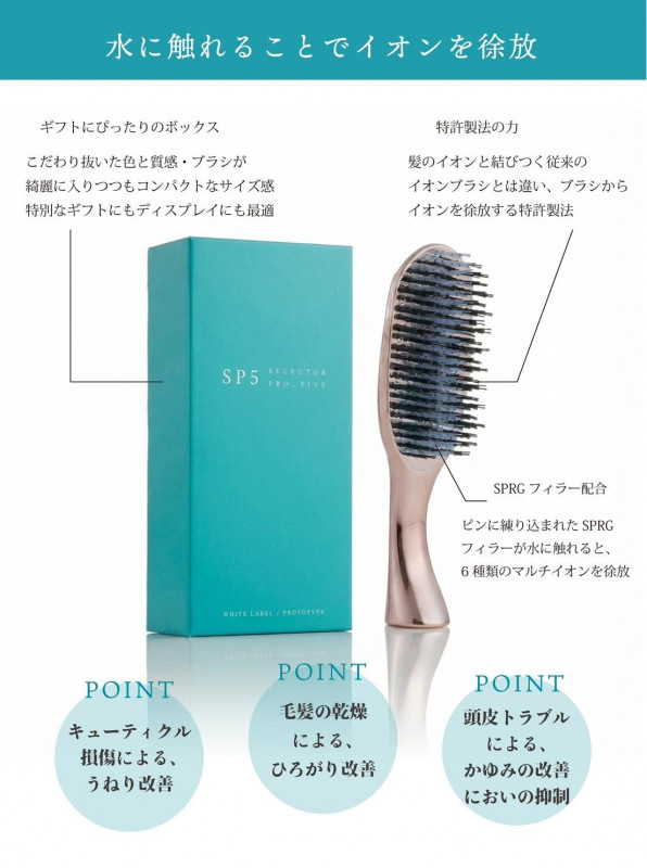 ブラシ中心のブラシピンに練り込まれているSPRGフィラーは水に触れることで6種のマルチイオンを放出してくれます。