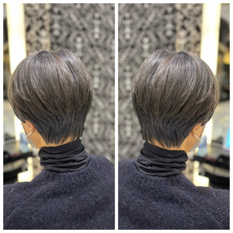 ショートスタイルなので、1年くらいで白髪が育ち、ハイライトと相まって、白髪ぼかしの成功!!!