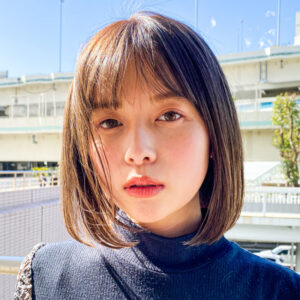 THE・王道のボブ。今も昔も人気の高いヘアスタイル。風にそよぐ軽やかさとほんのり毛束感があるのが今っぽい。縮毛矯正をすることで軽くするために梳いてもまとまり、ボリュームも抑えることができます。毛先をストレートアイロンで軽く内巻きにしてオイルをつけるだけの超簡単スタイル。