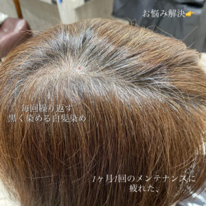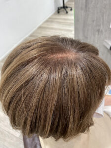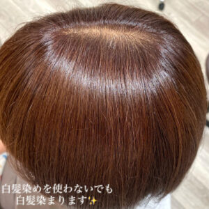 実はカラー剤の中には明るく白髪を染める事ができるカラー剤があります。もちろん黒く染めるよりは白髪の染め上がりは悪くなってしまいますが、正直お客様目線で友人や周りにいる方がこの染め方をしていても白髪染めをしているかどうかなんてわからないくらい綺麗になります!